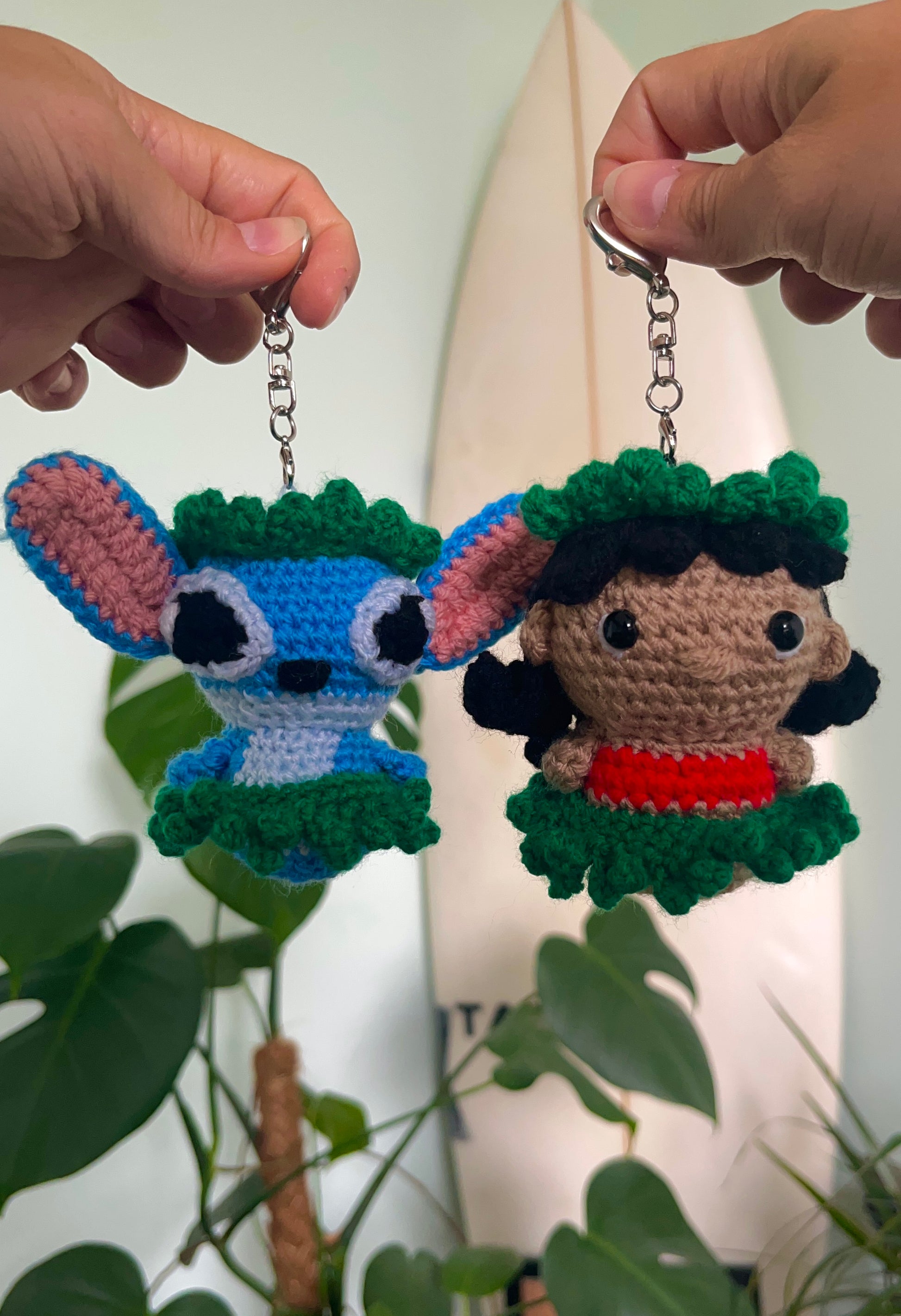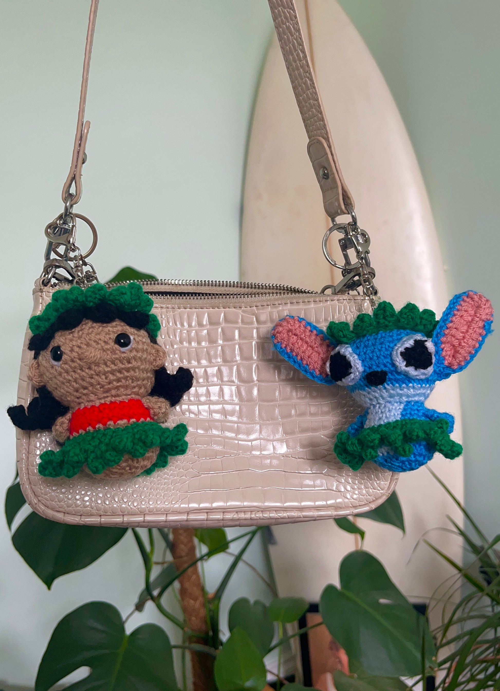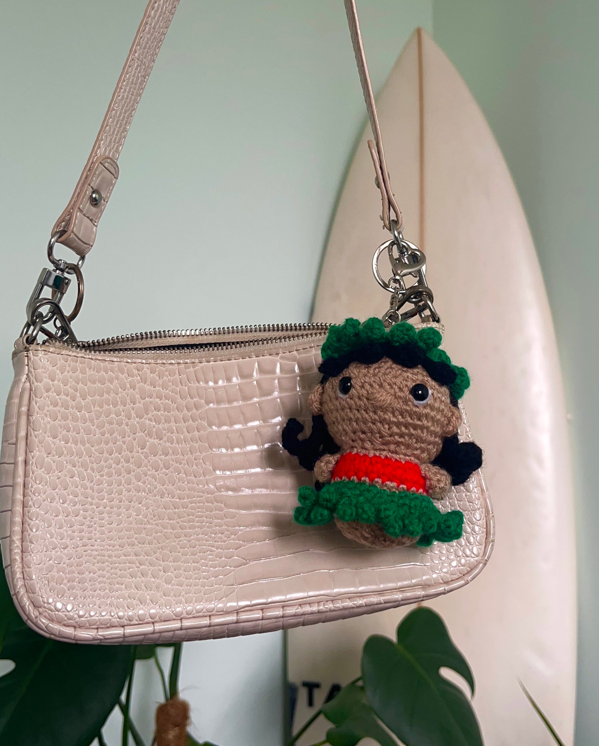 Featuring the iconic duo in adorable crochet form, it's the perfect little accessory to clip onto your keys, bag, or backpack.